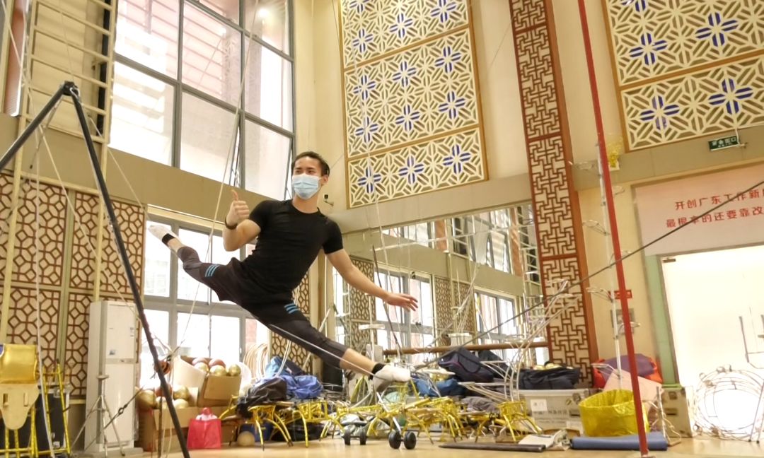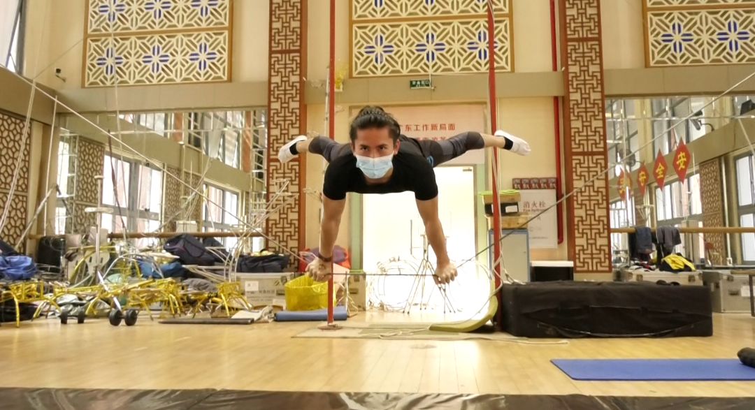 如吳正丹所感嘆的,“肩上芭蕾”的美麗是歷經(jīng)血與汗的苦澀才得以誕生的。在特殊時(shí)刻,直播鏡頭中可以看到許多雜技團(tuán)的演員們自覺戴著口罩積極訓(xùn)練,揮灑汗水磨練技藝。在吳正丹的講解中,技藝精湛的演員們?yōu)橛^眾展示了訓(xùn)練的日常。