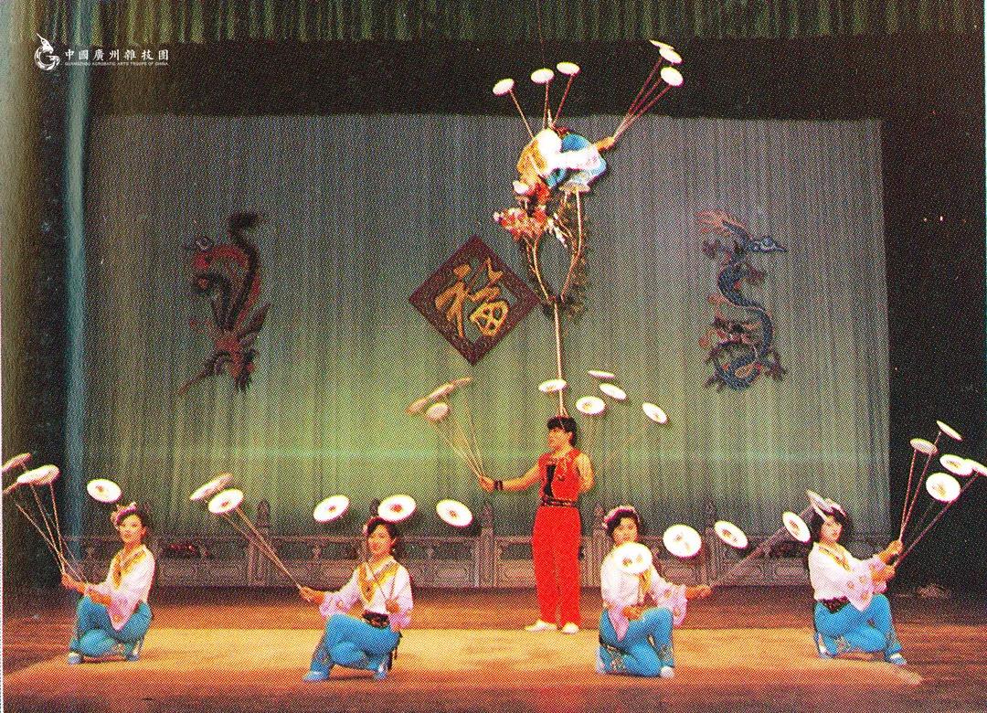 (廣州雜技團(tuán)演員李雪霞、張躍表演的《戴竿轉(zhuǎn)碟》)