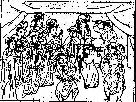 金人來索御前祗侯,方脈醫(yī)人,教坊樂人,內(nèi)侍官四五十人,露臺(tái)祗侯妓女千人,……又要雜劇、弄影戲、小說、打筋斗、彈箏、吹笙等藝人,一百五十余家,令開封府尹,押赴軍前。