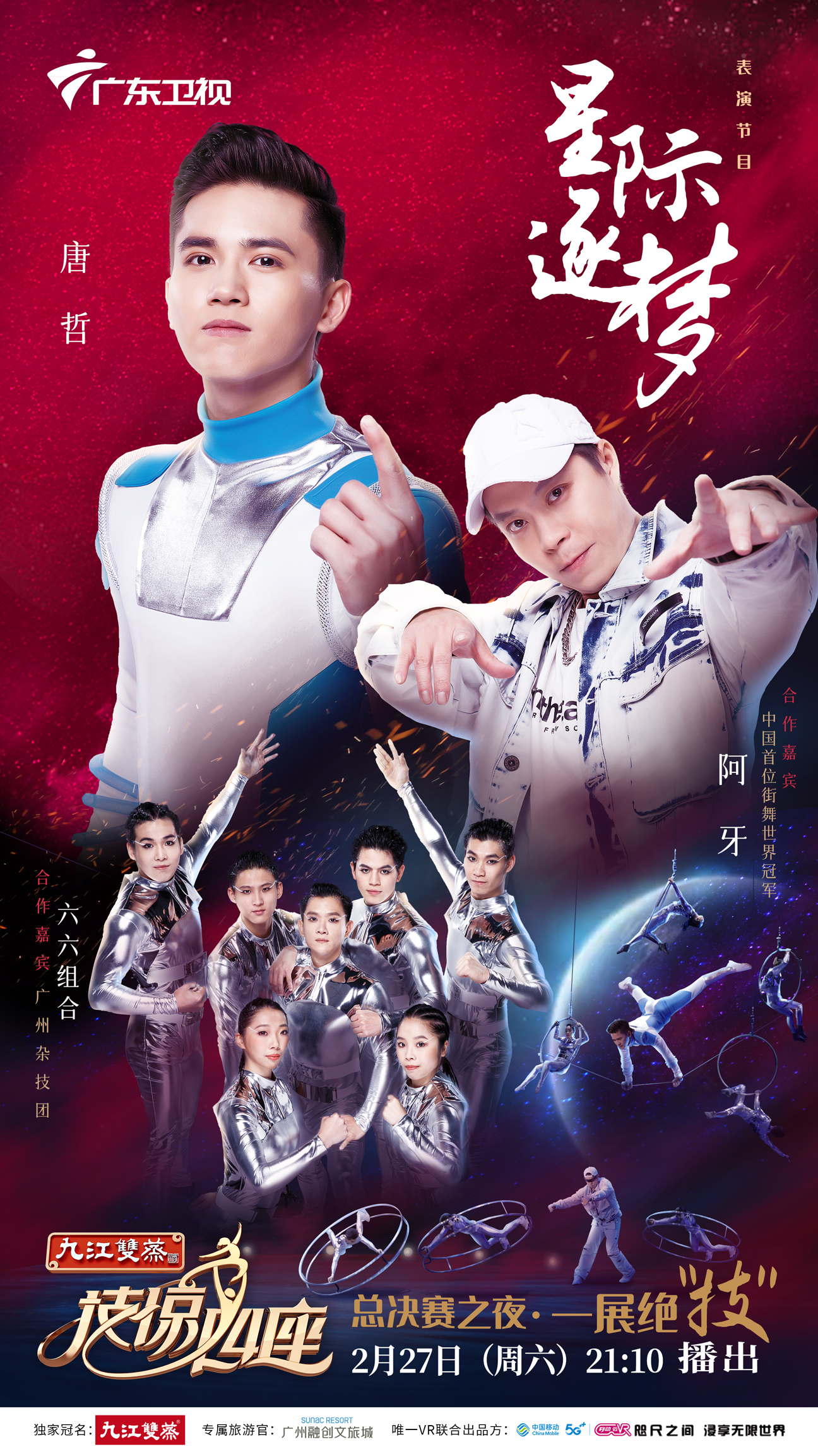 歷經(jīng)4輪激烈角逐,《技驚四座》5強(qiáng)選手脫穎而出,并于2021年2月27日展開(kāi)終極之戰(zhàn)。在總決賽中,廣州雜技團(tuán)優(yōu)秀演員唐哲攜該團(tuán)7位青年演員,將其金牌項(xiàng)目《升降軟鋼絲》與航天主題相結(jié)合,創(chuàng)新演出了《星際逐夢(mèng)》節(jié)目,贏得了專業(yè)評(píng)審、觀眾助威團(tuán)以及選手團(tuán)的認(rèn)可,最后勇奪冠軍,拿下本年度最受歡迎的“金牌雜技秀”稱號(hào)!