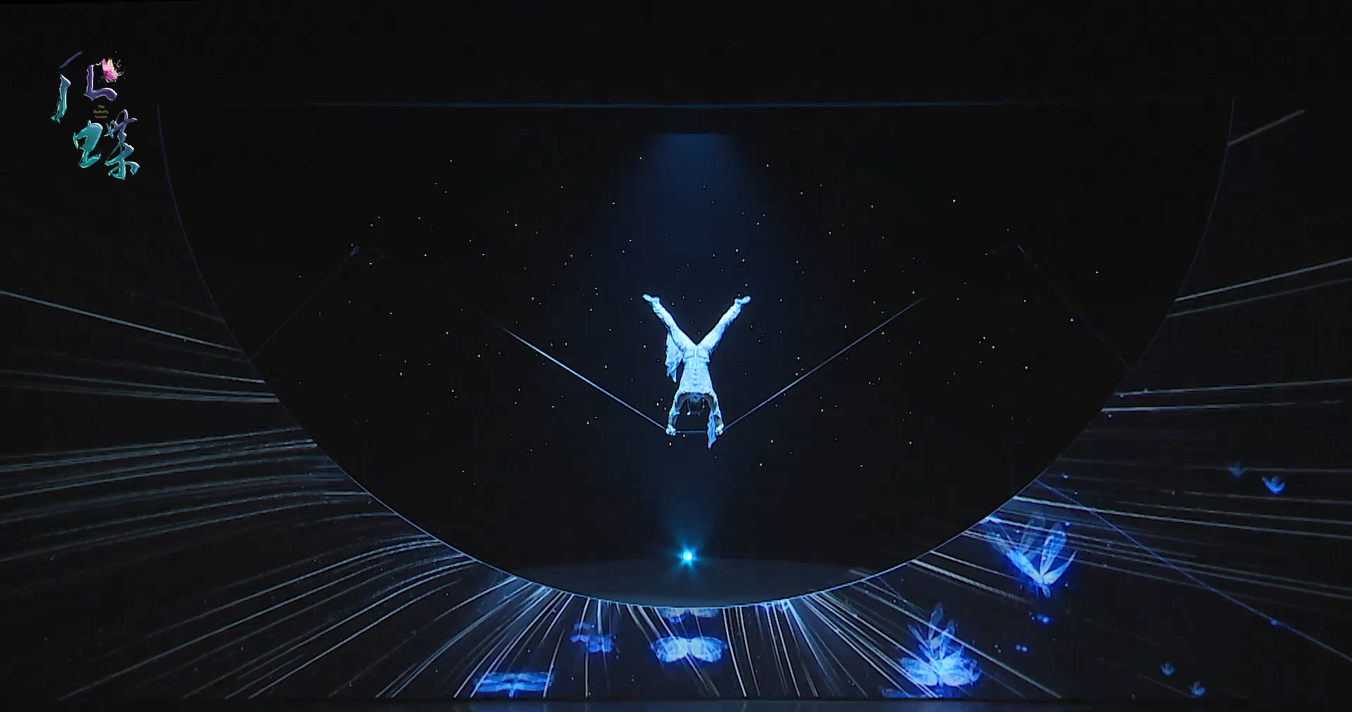 唐哲亦從中獲取靈感,換上代表著宇航員的藍(lán)白色表演服飾,將“倒立行走”、“單手倒立”、“倒立獨(dú)輪車(chē)”、“單拐倒立”等軟鋼絲高難絕技,與航空、飛行等意像相結(jié)合,把宇航員在太空中脫離地心引力與軟鋼絲急速下降時(shí)的重力失衡相呼應(yīng),再借助廣州雜技團(tuán)隊(duì)友們的助力,加入了吊環(huán)、滾環(huán)項(xiàng)目,營(yíng)造出浩瀚宇宙中,宇航員們?yōu)閴?mèng)想出征、負(fù)重前行的情境,表演扣人心弦,既有美感又有難度,新奇獨(dú)特。